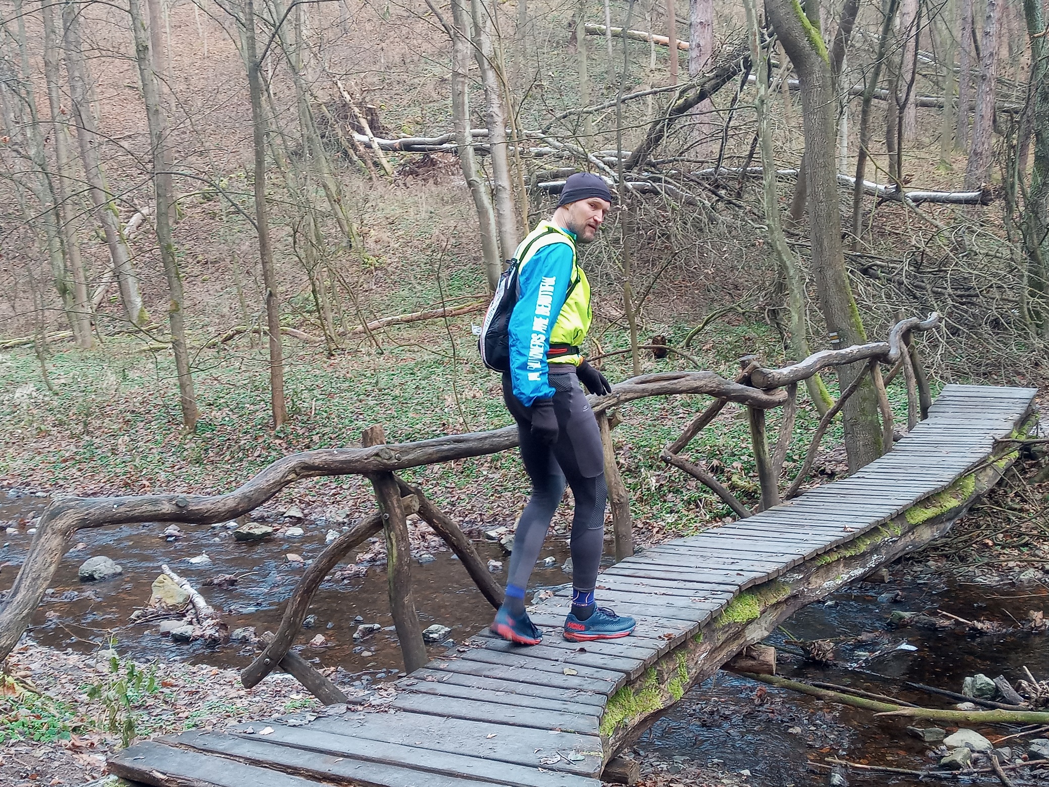 Běžecká varianta (Křemílek+Pája) odstartovala v pátek 4.12. po 22:00 na Karlštejně. Podmínky byly během pochodu stabilní - lehce mrzlo (-2C), všude většinou lehký sněhový neklouzavý poprašek, nebe někdy jasné, někdy zatažené, měsíc kousek po úplňku, noční coronavirový zákaz vycházení byl zrušen předchozí den. Ocenili jsme, že i když jinde v Čechách byla vichřice, tak na západě v údolích úplné bezvětří, na holých rovinách lehký větřík. Při mírném poklusu (průměr z počátku i s přestávkami cca 7.5km/h), cesta rychle ubíhala. Žlábek ve 2:30, maraton na Jinčově ve 4:10 (přesně po 6 hodinách běhu), Křivoklát ještě za tmy v 6:30, při stoupání do Bukové se již rozednívá a nad kopci visí temně rudé nebe. Snídaně v Coopu v Bukové. Následují pěkná údolíčka Sibova luhu a Tyterského potoka, trocha silnice do Hřebečníků a další údolíčko k Berounce. Na kozí stezce k Týřovu a na brodící pěšině Úpořským údolím už rychlostní průměr poněkud upadá. Pivovar v Broumech má ještě zavřeno a tak po malé přestávce pokračujeme na Kublov. Občas je modré nebe a svítí sluníčko, takže je i lehce nad nulou a sníh taje. V Kublově se dělíme, Pája se vrací přes Leontýn k autu na Křivoklát. Já pokračuji údolím Ticha na Žebrák a Točník, kde se kolem 14:00 potkávám s Dášou a malýma holkama, které si radostně popobíhají z kopců i do kopců. Já si tedy moc nepopobíhám, ale do Hředlí je to už jen kousek. Při čekání na Dášu nabírám potřebné km do 99 chozením tam a zpět, další km pak přidávám při čekání na vlak a cestou domů. Ve výsledku Pája dal 100-ku za 16hodin, já za 17. Náhradní termín proběhl o týden později. Startovním místem byla hospoda Na Závisti u kostnice v Sedlci u Kutné Hory v 18:00. Na startu Pet, Miro a já. Podmínky nebyly už tak ideální jako před týdnem. Bylo lehce nad nulou, celou noc drobně pršelo nebo padal sníh, cesty se začaly blátit. Tma byla naprostá, měsíc byl skoro v novu. Noční zákaz vycházení byl stále ještě zrušený (o týden později byl pak opět obnoven), ale stejně jako minulý týden jsme nepotkali nikoho, kdo by toho chtěl využít. Podél Vrchlice jsme po červené dobyli hrad Sion a lesní rozcestí Bahna a pak po modré, zelená, žluté a silnici došli do Rašovic na noční občerstovačku u Petrovi kamarádky. Byly jsme tam skoro hodinu od půl jedné do půl druhé. V Uhlířských Janovicích jsem Peta a Mira opustil a +- podél potoka Vavřinec pokračoval směr Kouřim. Z Doubravčan jsem přitom pohrdl modrou značkou po silnici a cestou necestou (jak se ukázalo po původní trase modré značky) prošel do Vlčího dolu na žluté pod Zásmukama. Svítání jsem si pak užil na Kouřimském hradišti. S odobčkou na náměstí jsem pak došel na vlak (celkem 60km). Druhá část výpravy proběhla takto : "s Mirem jsme pokračovali po plánované trase na Český Šternberk. V motorestu U rybiček v 7h ráno jsme ulovili k snídani polévku a guláš. Do té doby mrholení/mírné sněžení ustalo a my už za světla pokračovali do Domašína na žel. stanici. Tou dobou už měl Miro slušné puchýře a tak začal zaostávat, což jsem doháněl občasnými vratkami. V Domašíně jsme byli až v 11:15, kde nás přivítali Čindi a Bobík s alkoholovým obveselením. Dál jsem se rozhodli změnit trasu a míříme do Benešova po Z a po Č. Společně a částečně děleně, tak jak byly síly. Miro s Bobíkem skončili ve Struhařově. Já došel do Benešova na vlak a zvládl tak 100km za 23h. Čindiho jsme ztratili, ale došel asi taky do Benešova." K tomu Čindi dodává : "jsem nějakou dobu čekal na Mira s Bobíkem asi 5 km před Benešovem. A protože mi s nějaké důvodu nenastartoval mobil, tak jsem nevěděl, že kluci šli zkratkou na vlak. Tak jsem to nakonec namastil po červené a šel jsem na vlak 16,49. Tam jsem vás nikde neviděl , tak jsem jel osobákem v 16.52. V teple mi trochu nastartoval mobil a šel konečně nabíjet, tak jsem pak mluvil s Mirem a zjistil co se děje." Po termínu (ale pokus byl uznán), vyrazil na pochod ještě Lojza s dětmi : Vážená Křivoklátnická komise, V závěru roku 2020 jsme s dětmi podnikli dva Křivoklátské pokusy. 31.12 jsem s Tomášem (DZV 16 km) a Šimonem (DVZ 6km) jsme vyrazili jednou z klasických tras po cyklotrase z Rakovníka (18 km) do Křivoklátu podél potoka. Počasí bylo ideální, polojasno, mírně mrzlo. Šimon jel většinu v kočárku a trochu na odrážedle. Ušel odhadem 1 až 2 km. Jedinou nepříjemností byl závěrečný úsek z Městečka do Křivoklátu, kde jsme se těšili na pěknou cestu podél potoka, ale v důsledku stavby vodovodu zde byl velmi náročný terén. Naštěstí zmrzlý, ale s kočárkem obtížně průchozí. O den dříve 30.12. jsem podnikli vzpomínkový výlet na hřeben Brd v oblasti Hradec-Liška (po silnici k raketové základně). Na této klasické trase noha Křivoklátníka stanula naposledy v roce 2007 (a já osobně tam snad nikdy nebyl za světla). Děti jsem tam měl všechny (Šimon byl v kočárku - 0 km) a nachodili jsme tam asi 5 km. Dochod žádný, ale snad nám to uznáte jako účast, vzhledem k tomu co všechno se poslední roky počítá. Dětem jsem dal přednášku o tom, na jak významném křivoklátnickém místě se nacházeli. Lojza
