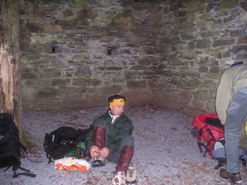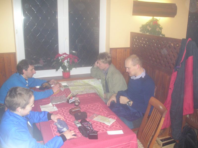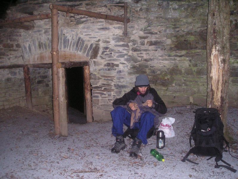 Z Karlštejna vycházíme v 16.10 a je nás 5 zkušených Křivoklátníků a nováček Pája. Lojza a Petr šetří již od začátku silami a raději obcházejí Karlštejn údolím, my ostatní dobýváme karlštejnskou bránu a již se těšíme na bránu křivoklátskou. Počasí nám přeje, je skoro jasno, umrznuto, ale není moc zima. Rychle se stmívá, kolem Bubovických vodopádů už klopýtáme po namrzlých skálách v úplné tmě. Když vystoupáme z údolí, svítí nám ale na cestu měsíc v první čtvrti, do půlnoci máme o světlo postaráno. V Chrustenicích je první větší odpočinek, když dobíráme čaj. Postupně se zatahuje a začíná sněžit. V Kyšicích si dáváme večeři v hospodě, když vycházíme již nesněží, ale je všude bílo. V údolí Žlábku svačíme u rozsvícené kapličky se studánkou a pak zasněženými lesy dobýváme hrádek Jinčov, kde je další odpočinek. Všichni jsou zatím v pohodě, ani Lojza zatím nechce jít někem na vlak a ani neříká, že už nemůže. Z Jinčova nás po krátkém silničním úseku čeká vysilující bloudění po špatných cestách kolem Lánské obory, čas utíká ale kilometry ne. Konečně jsme v Lánech, Pet říká, že ho bolí kotník a že jde na vlak. Lojza zase neříká nic a jde dál. Zase začíná sněžit, všude je krásně bílo a blíže se ráno, když docházíme na vlakovou stanici Řevničov s otevřenou čekárnou. Někdo jí, někdo spí, nejčilejší je Pája. Verča už dál nejde, bolí jí noha. Lojzu ani projíždějící vlaky neodrazují od úmyslu jít dál. Zdá se, že má letos opravdu natrénováno. Již za světla opouštíme čekárnu a stoupáme na Louštín, kde je již asi 5cm sněhu, ale při sestupu z něj zbude zas jen slabý poprašek. Několikrát křížíme koleje, Lojzovi se líbí hlavně tunel, prý první Křivoklátnický, je to možné, ale určitě nejdelší.Kousek dál dobíráme kyselku ze železitého Merklova pramene. Hezkými lesy docházíme na rozcestí nad Rakovník a nevíme kudy dál. Přes Rakovník se nikomu nechce, cesta lesama na Křivoklát je moc krátká. Nakonec jdeme přes Rakovník, přibývá asfaltu a aut, podél Rakovnického potoka již sice auta nejezdí, ale je tam nově vyasfaltovaná cyklostezka. Z Pájou bloudíme při pokusu opustit údolí a jít po červené značce, aspoň máme ujité potřebné kilometry do stovky. Petr s Lojzou jdou údolím, Lojza jenom tam, Petr, jak se zdá ze stop, jeden úsek tam, zpět a tam, aby měl stovku. Docházíme Lozju, Petr je prý někde za námi, nejspíše asi v hospodě v Pustovětech. Jdeme dále po cyklostezce, teď už jen občas asfaltové, údolím Rakovnického potoka do Městečka. Těsně před Křivoklátem mě dohání Pája a Petr, prý spěchají na vlak. Lojza je někde daleko za náma, ale cyklostezka je mnohem delší než silnice, takže jsme u hradu všichni téměř současně. Lojza má první pořádný dochod, ale už nechce jít zbývající 3km do stovky, prý aspoň bude mít motivaci na příště.